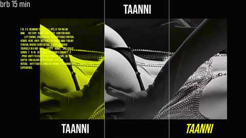 Video of a young woman with long dark hair, light skin, and closed eyes, sitting topless on a gray couch with a subtle gray background.