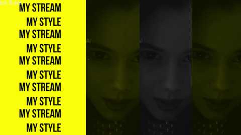 Video of a young woman with long dark hair, wearing a black-and-white striped halter top, sitting on a couch in a dimly lit room with decorative pillows and a butterfly-patterned wall.